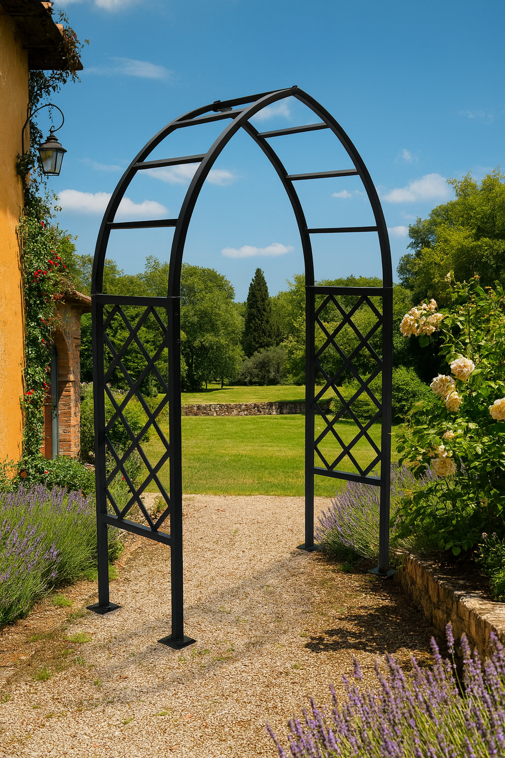 The Cathedral Collection’s 6-foot full-lattice model delivers a bold yet refined presence. Its continuous diamond pattern enhances the Gothic form, while the precision-welded steel and durable finish ensure years of elegance and performance.