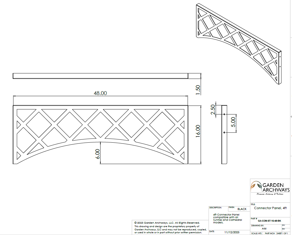 Accessories. 48" Connectors for Sunrise & Cathedral Trellises