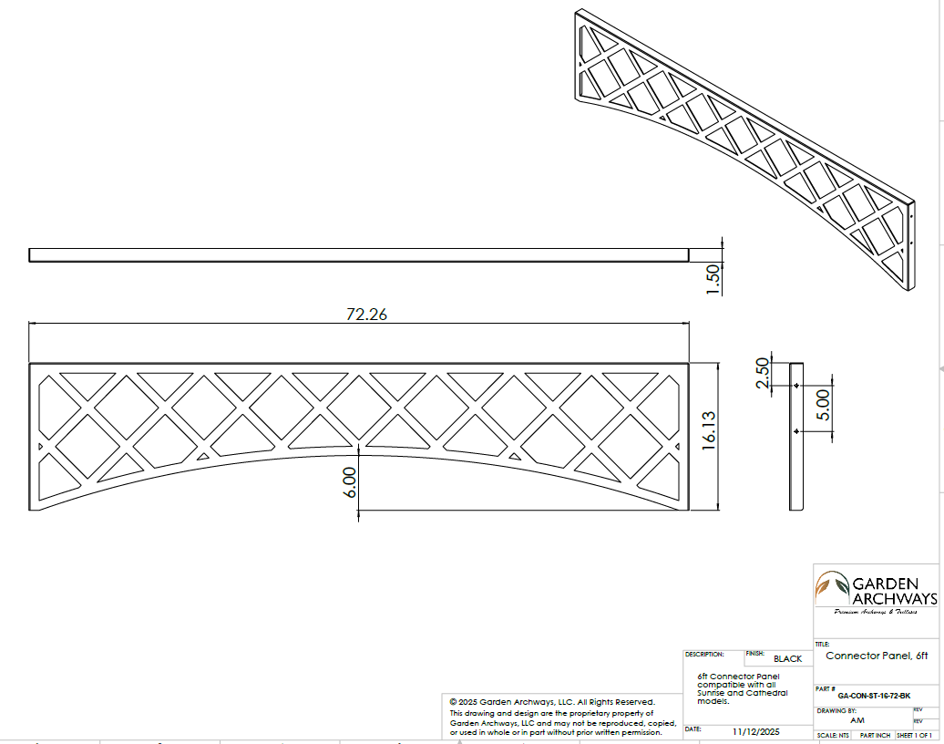 Accessories. 72" Connectors for Sunrise & Cathedral Trellises